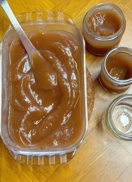 Cook: Place apples, cider, sugar, and spices into a slow cooker. Cover and cook on LOW for 8–10 hours (or HIGH for 4–5), stirring occasionally, until apples are very soft and dark brown.