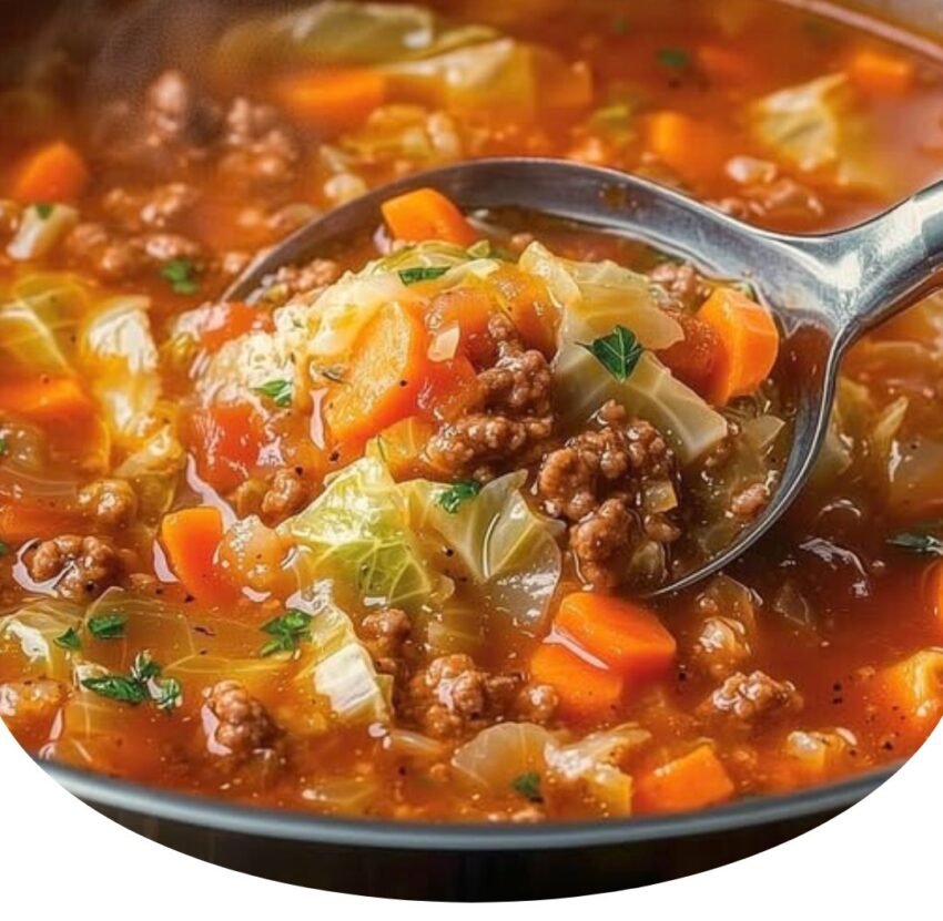 All the flavors of stuffed cabbage rolls—but in an easy, hearty soup! Tender beef, rice, and cabbage simmered in a rich tomato broth.