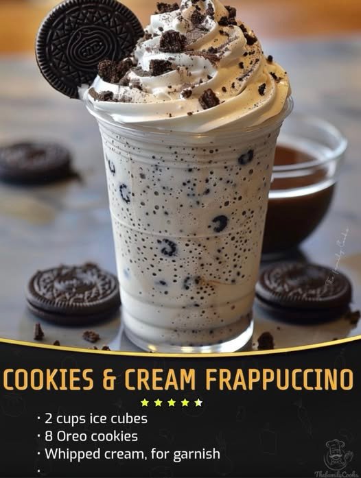 Here’s a sweet and creamy Cookies & Cream Frappuccino 🍪🥤 — tastes like a milkshake with a coffee kick