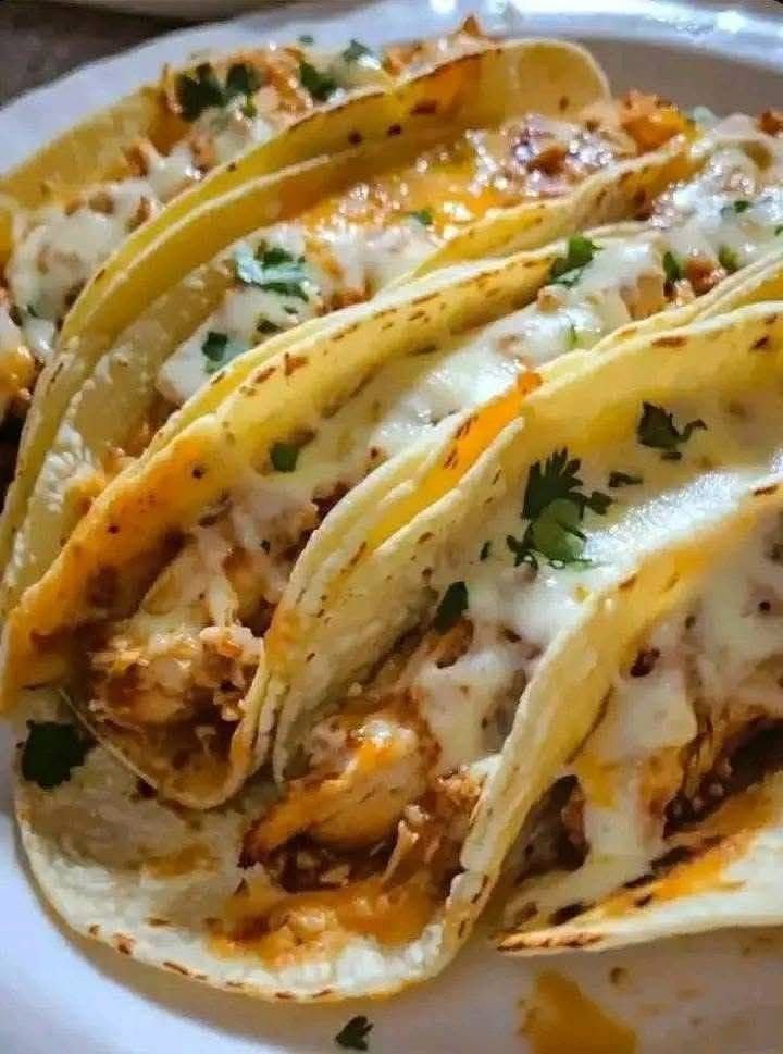 These tacos are next-level indulgent—think queso meets chicken enchiladas in taco form! Serve with a cold beer or margarita. 🍗🧀🌮
