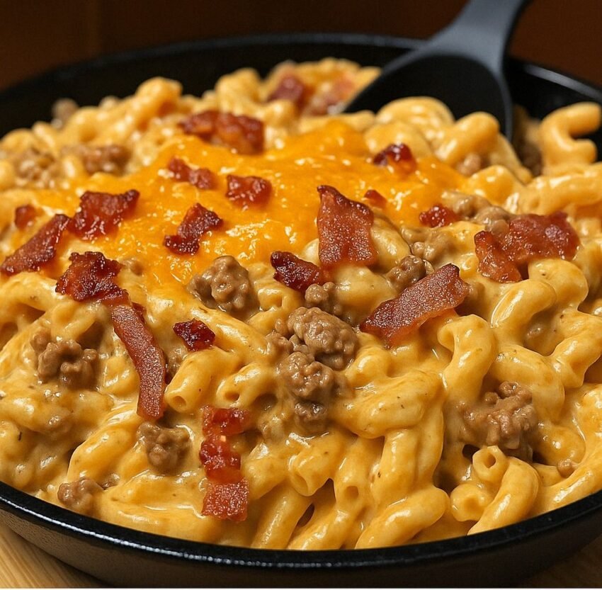 A decadent mashup of juicy cheeseburgers and rich Alfredo pasta—packed with crispy bacon, melty cheese, and a velvety garlic-parmesan sauce!
