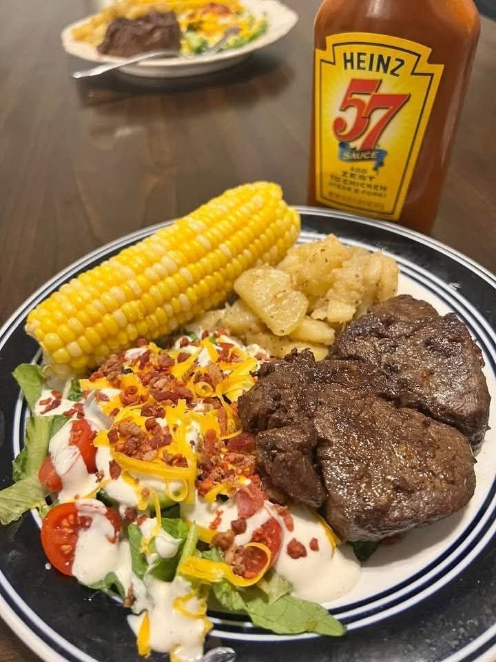 A classic, elegant dish featuring tender filet mignon paired with golden roasted potatoes and caramelized onions. Perfect for a special dinner!