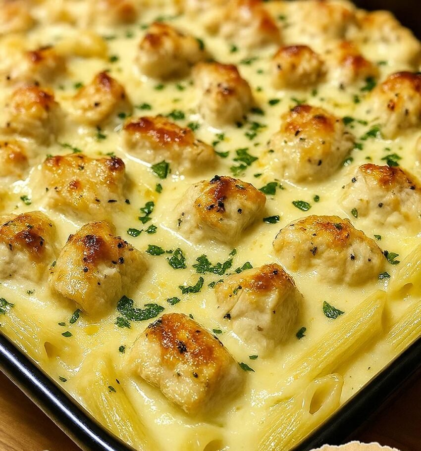 Creamy, garlicky, and loaded with tender chicken and pasta, this Alfredo bake is the ultimate comfort food casserole! Perfect for weeknights or feeding a crowd.