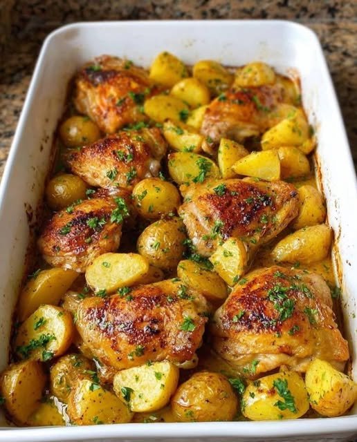 🍗 Garlic Herb Roasted Chicken Thighs with Baby Potatoes