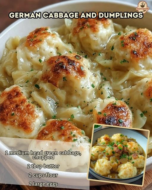 Here’s a hearty German Cabbage and Dumplings recipe — a classic comfort dish often found in old-fashioned German kitchens.