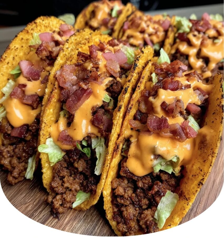 These crunchy, savory, indulgent tacos taste like a deconstructed bacon cheeseburger—every bite is pure joy! 😋