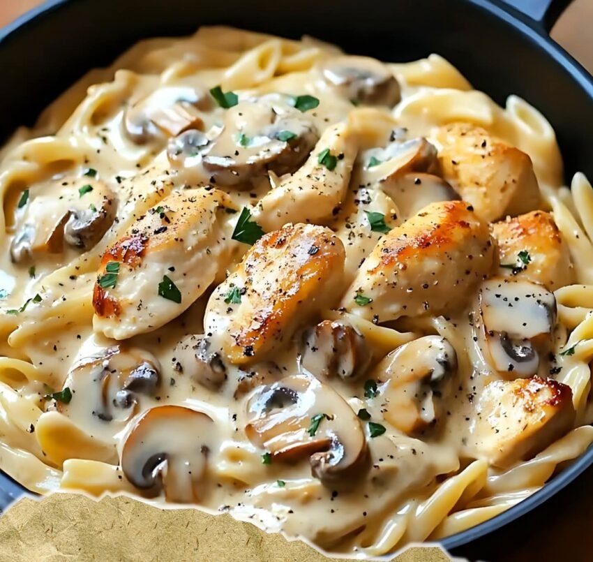 A luxurious, restaurant-worthy dish with tender chicken, earthy mushrooms, and a velvety cream sauce that clings to every bite of pasta.