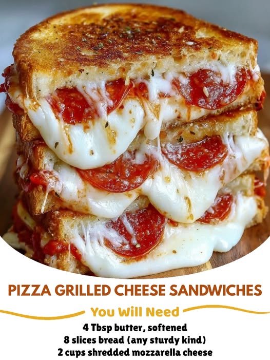 That’s a genius mashup — a melty Pizza Grilled Cheese Sandwich 🍕🧀🥪 Crispy bread outside, gooey cheese and pizza flavors inside. Here’s how you can whip it up: