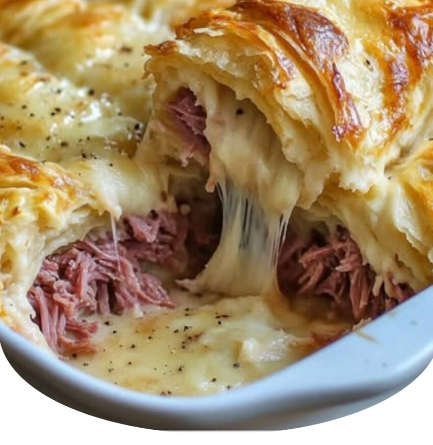 A fun twist on the classic Reuben sandwich! Flaky crescent roll crust piled high with corned beef, sauerkraut, Swiss cheese, and Thousand Island dressing—baked until golden and bubbly. Perfect for St. Patrick’s Day or an easy weeknight dinner!