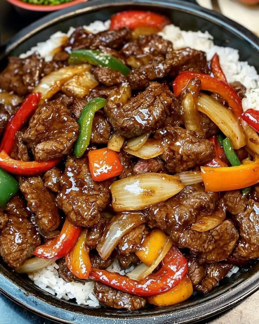 Tender strips of beef, crisp bell peppers, and onions wok-tossed in a savory, garlicky black pepper sauce—ready in 20 minutes and better than takeout!