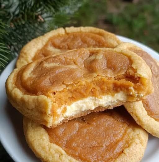These cookies are soft, spiced, and stuffed with creamy cheesecake—like a mini sweet potato pie in every bite! Enjoy! 🍠🍪